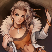 a young woman with white hair. She is depicted in a fantasy-style outfit that includes elements like fur, armor, and what appears to be tribal or