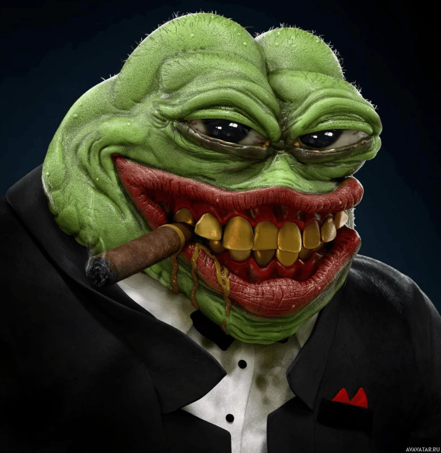 The image depicts a character known as "Pepe the Frog," which is