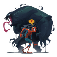 Comics universe: Spider-Man and Venom. They are depicted in a style that is reminiscent of