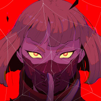 The image depicts an animated character with a cyberpunk aesthetic. The character is wearing a mask and has a stylized, futuristic design, which aligns with the Cyberpunk 2077 theme. The character's eyes are red, adding to the edgy and intense look of the artwork. The background is dark with red elements that contribute to the overall moody atmosphere of the image.