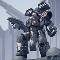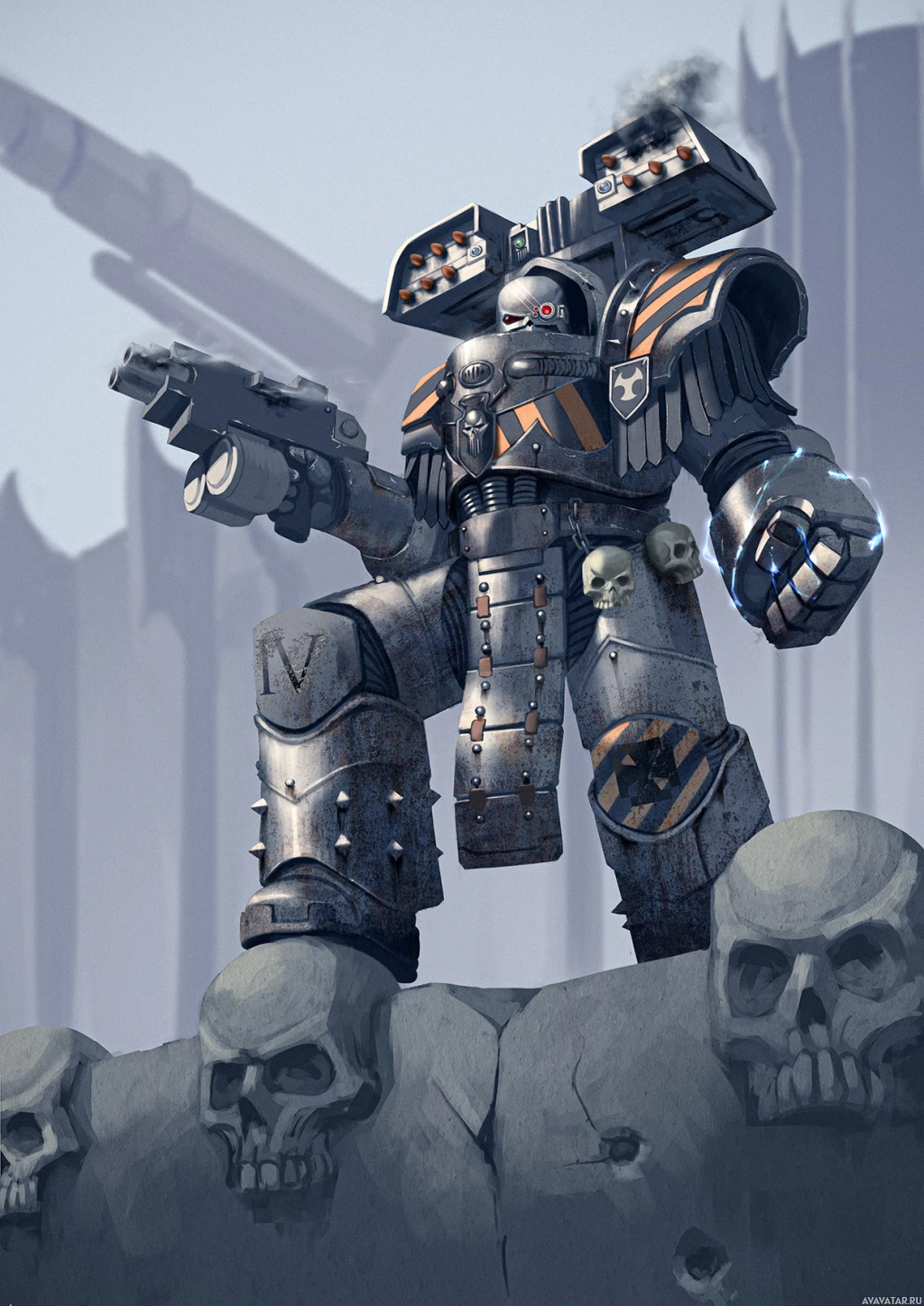 battlefield environment. The artwork likely falls under the genres of science fiction or fantasy, as it portrays