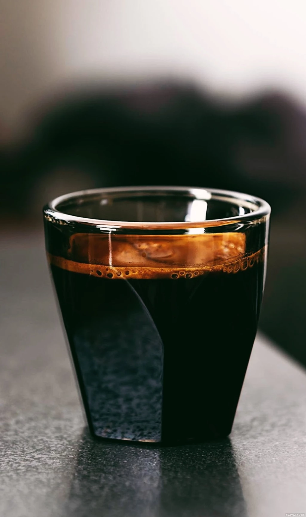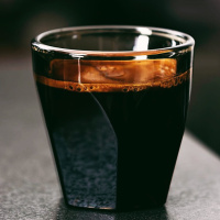 The image shows a close-up of a glass of dark liquid, which is likely