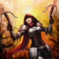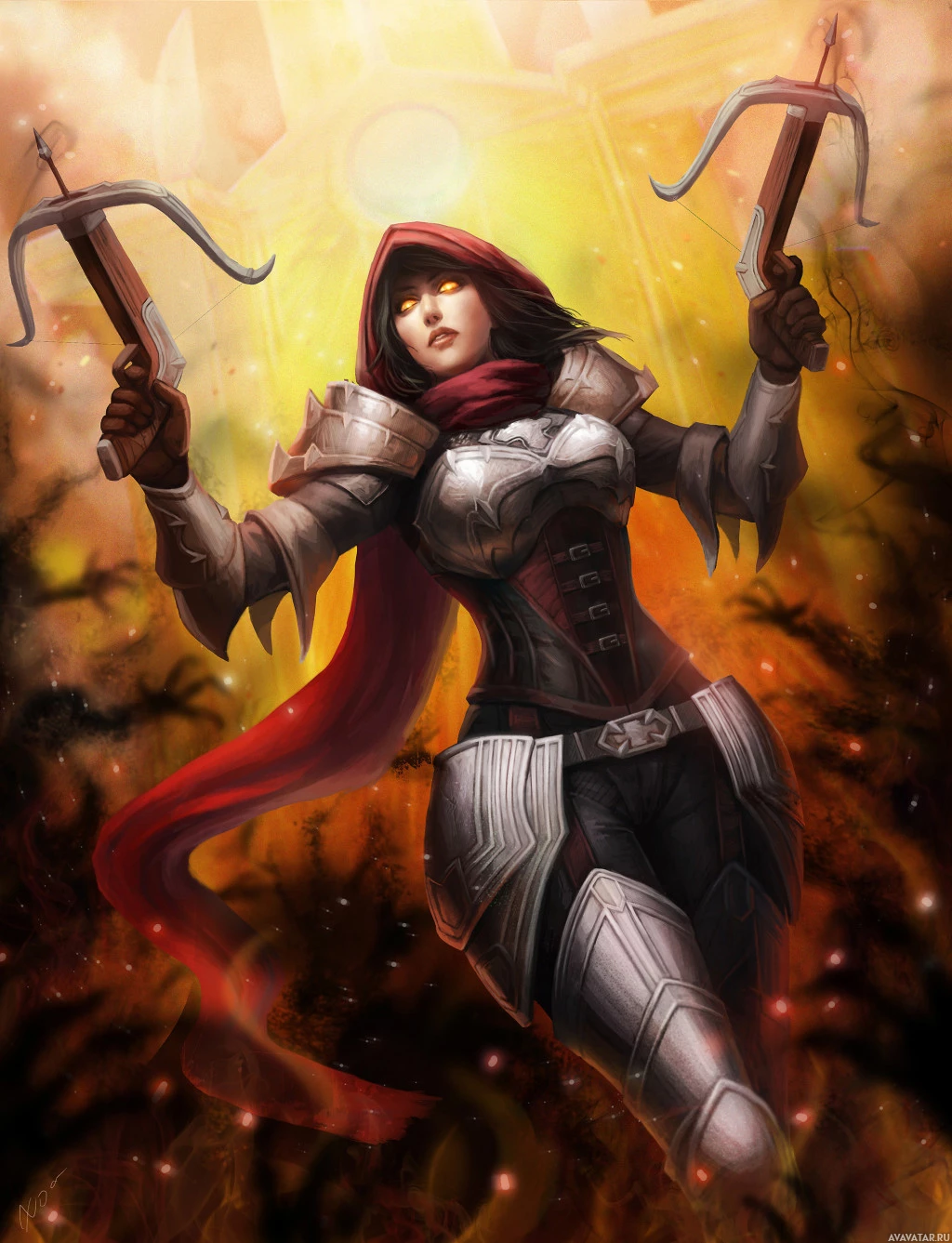 video game series, known as a Demon Hunter. This character is depicted holding two crossbows and appears to be in