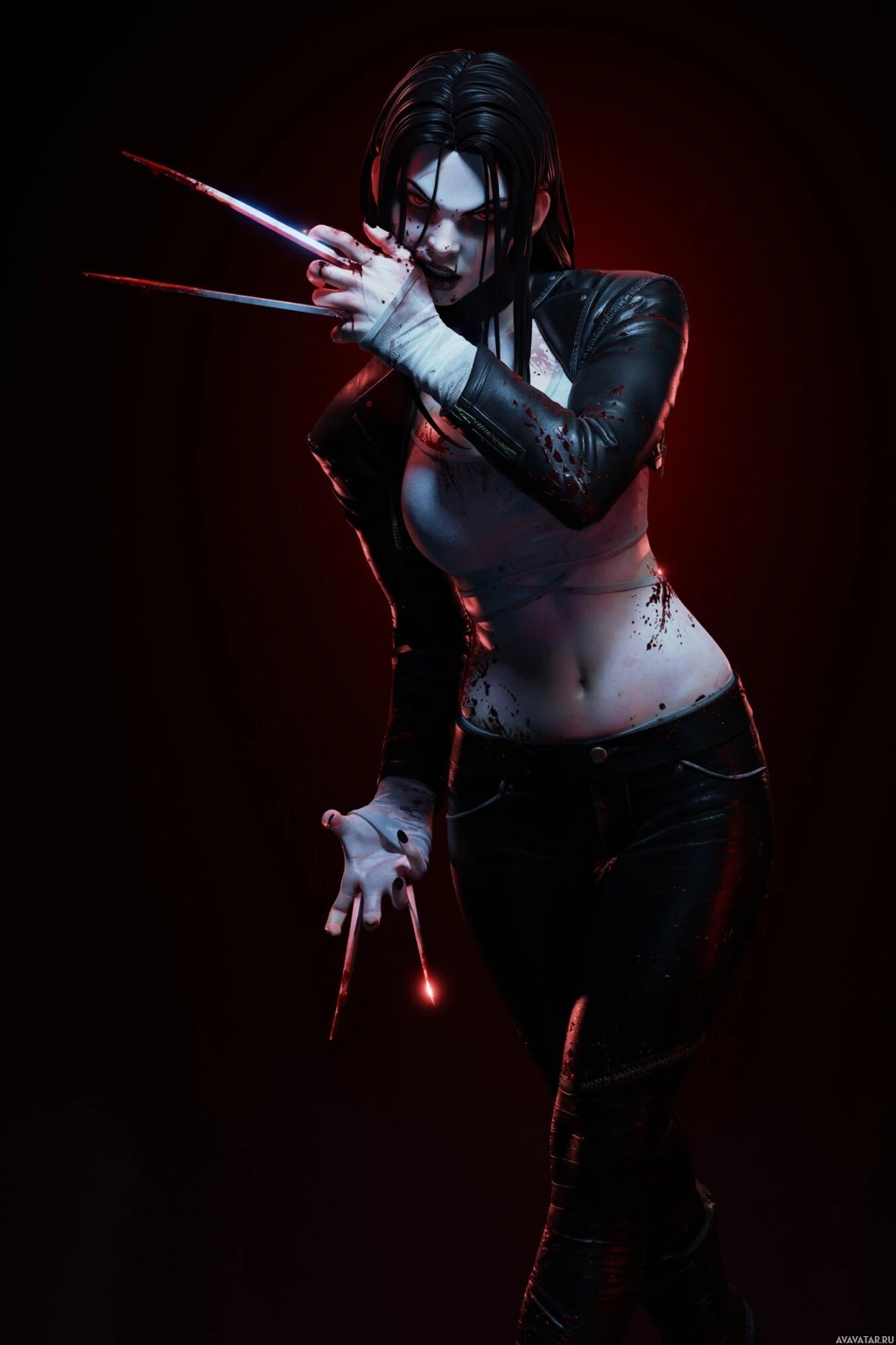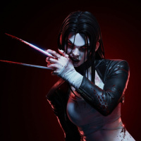 The image features a character who appears to be X-23 from the "X-Men" series, known for her adamantium claws and