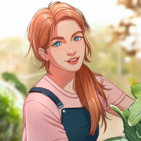 outdoor activity related to plants or farming. Her outfit suggests she is prepared for work, possibly suggesting a theme of agriculture or nature-