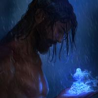 magical object, which suggests that this might be part of a storyline involving magic or fantastical elements. The rain adds an atmospheric touch to the image, enhancing