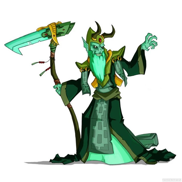 the video game Dota 2, specifically known as Necropho. This character is depicted with a fantasy theme and is holding what looks like a scythe or a weapon. He has an ethereal quality, possibly due to his undead status, which is typical for characters in