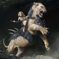 a fierce expression. The style of the artwork suggests it could be related to video games, comics, or