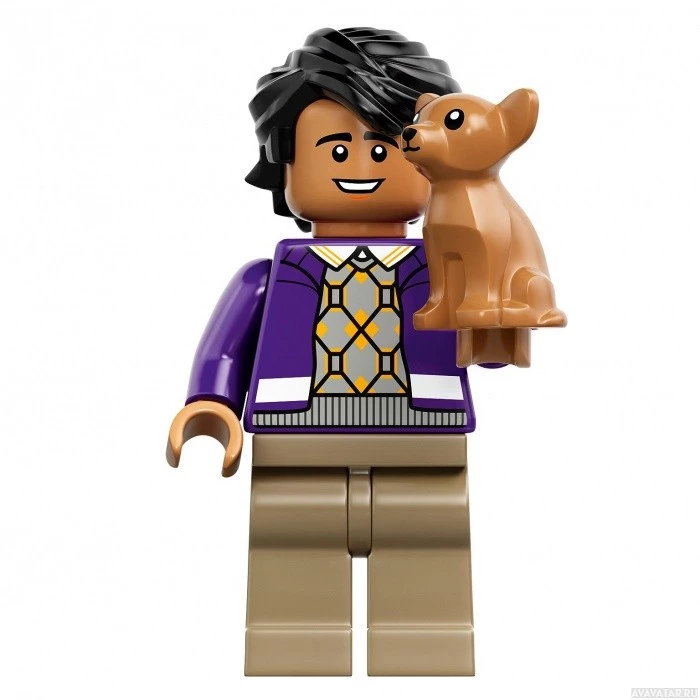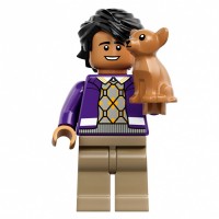 a LEGO minifigure holding what appears to be a small, brown animal with four legs and two ears. This could likely be a representation of a character from a popular animated series or