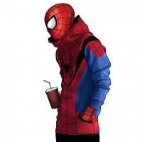The image depicts a character that resembles Spider-Man, a well-known superhero from