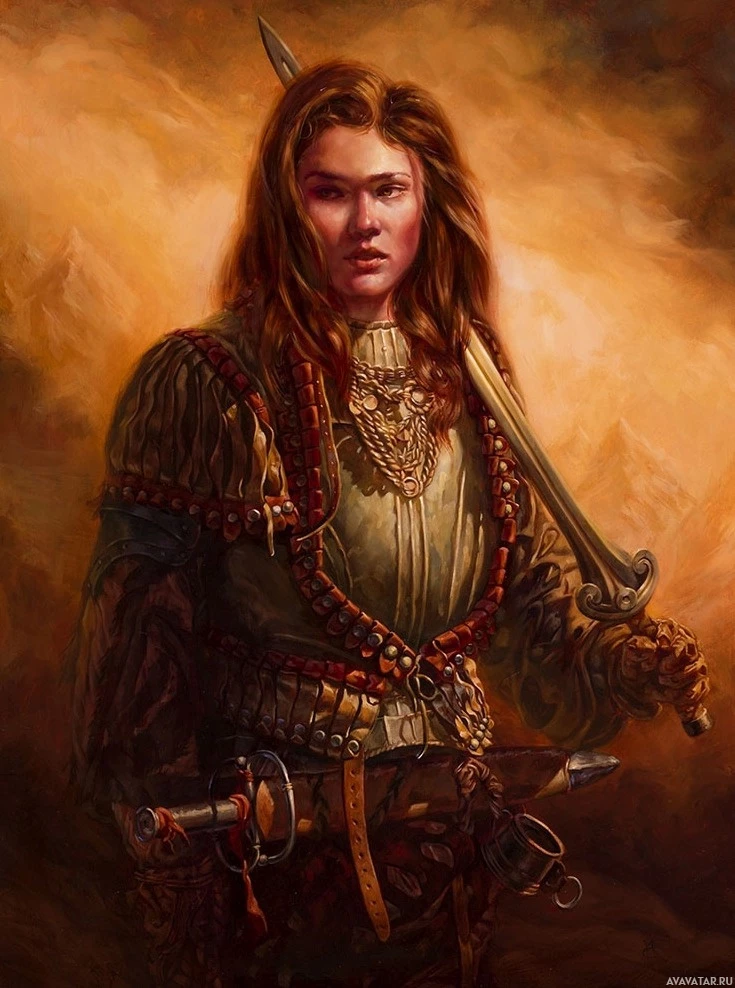На картинке изображен персонаж, похожий на воина, возможно, вдохновленный жанрами фэнтези. У человека рыжие волосы, он одет в доспехи и держит меч в правой руке. Они стоят на фоне атмосферы, которая наводит на мысль о поле битвы или месте конфликта.