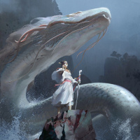an empowered pose, possibly controlling or communicating with the dragon. The setting suggests an adventurous and mystical environment, possibly part of