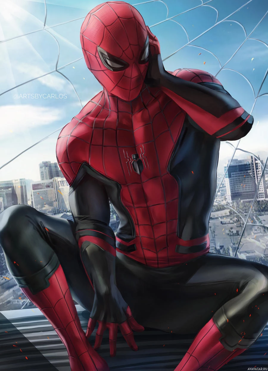 The image shows Spider-Man, a fictional superhero character known from American