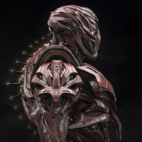 The image depicts a humanoid robot, characterized by its red and white metallic structure. It appears to have a highly intricate design with mechanical parts and possibly advanced technology features. The background is dark, which contrasts with the robot's shiny appearance and highlights its presence in the center of the image. This setting suggests that it could be part of a science fiction narrative or theme.