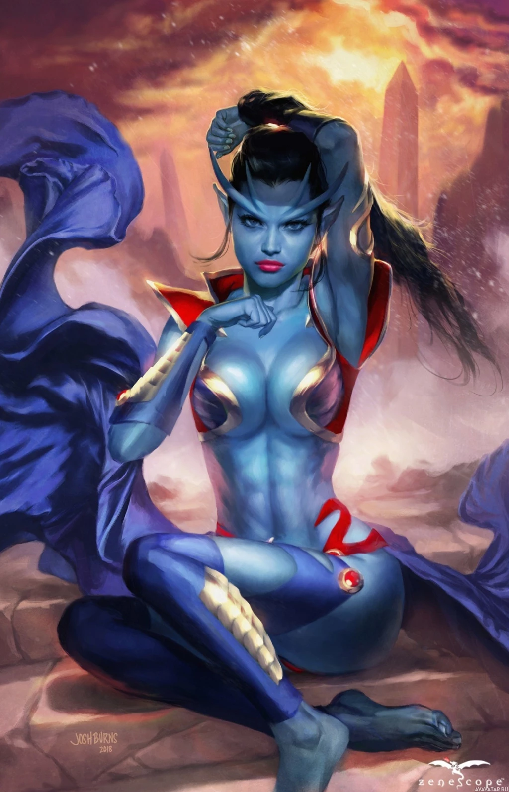 The image depicts a fantasy-themed character. She appears to be an elf or other