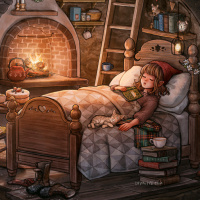 comfortable bed with pillows where the elf is sleeping peacefully. Various