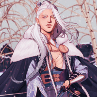 looking armor and holding what appears to be a bow or weapon, suggesting they might be a warrior or archer type. The background includes a snowy landscape with bare trees, which adds to the wintry,