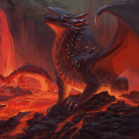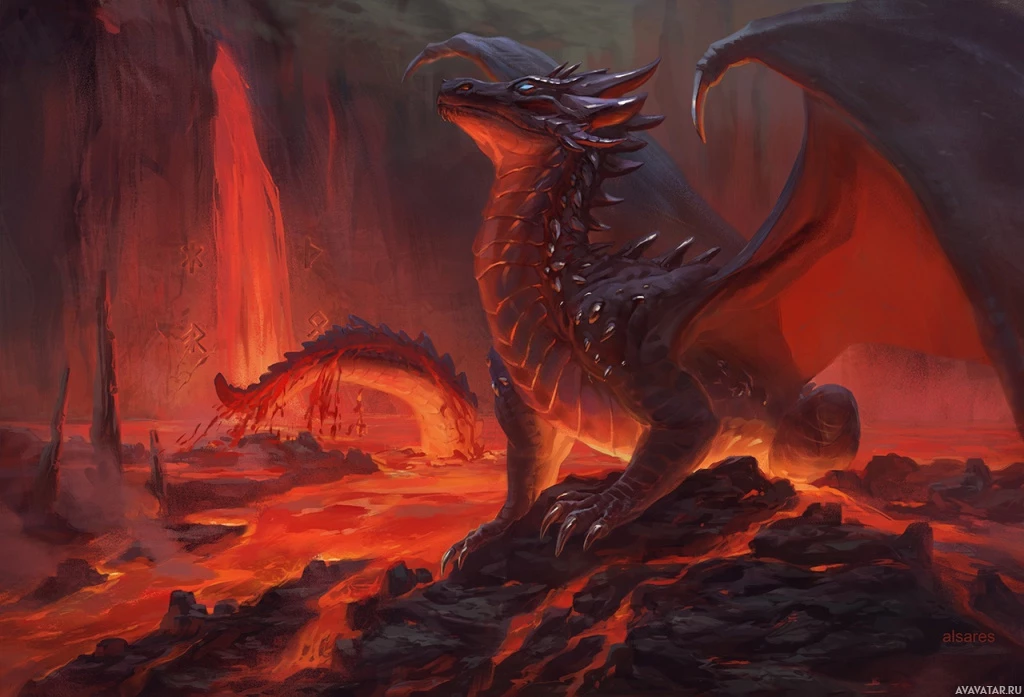 fantasy settings where dragons are often portrayed as residing in such environments. The overall atmosphere is intense and dramatic, fitting for a creature known as the "King of All Serpents."