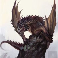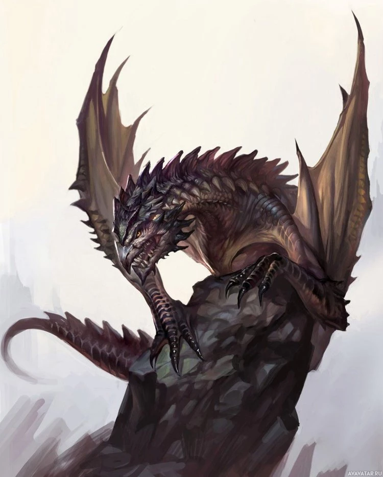 large wings, and scales that give it an intimidating appearance. The dragon is perched on what appears to be a rock or