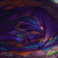 colorful items that could be interpreted as either magical or part of the dragon's hoard. The items include books, scrolls, and other objects with