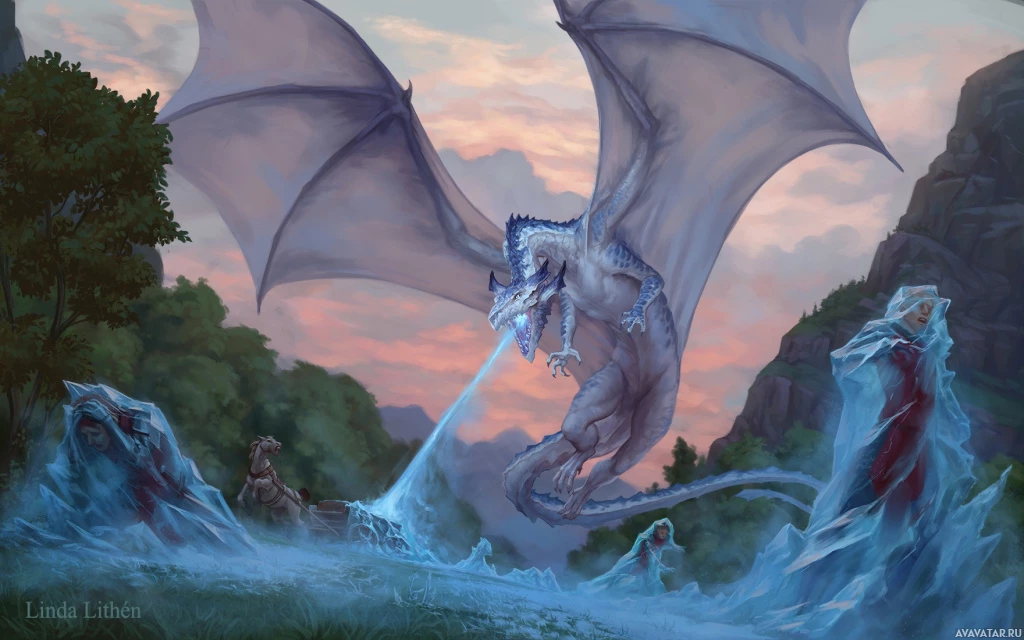 fantasy literature and media. It appears to be flying over