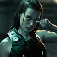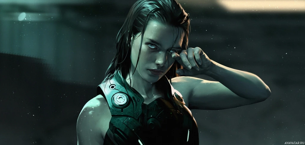 dark hair and is wearing some form of armor, which suggests she might be a warrior or combatant within the context of her storyline. Her expression is serious and intense, indicating she could be in a situation requiring focus or determination.