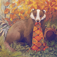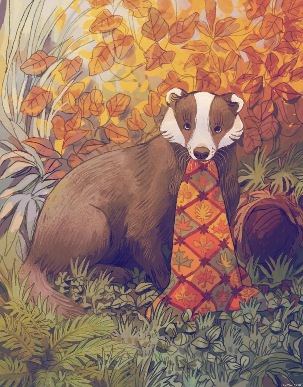 The image features an illustration of a badger wearing a tie. The badger is depicted in