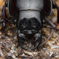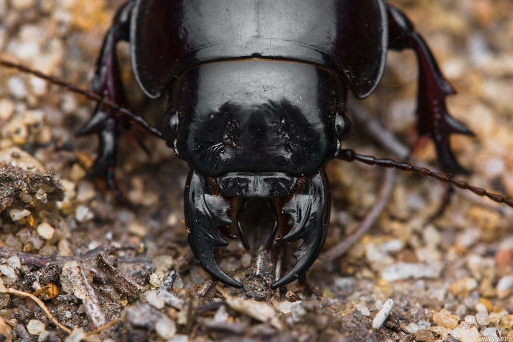 hard exoskeleton and segmented antennae. Beetles are known for their distinctive shapes and often vibrant colors. This particular beetle appears to have