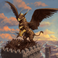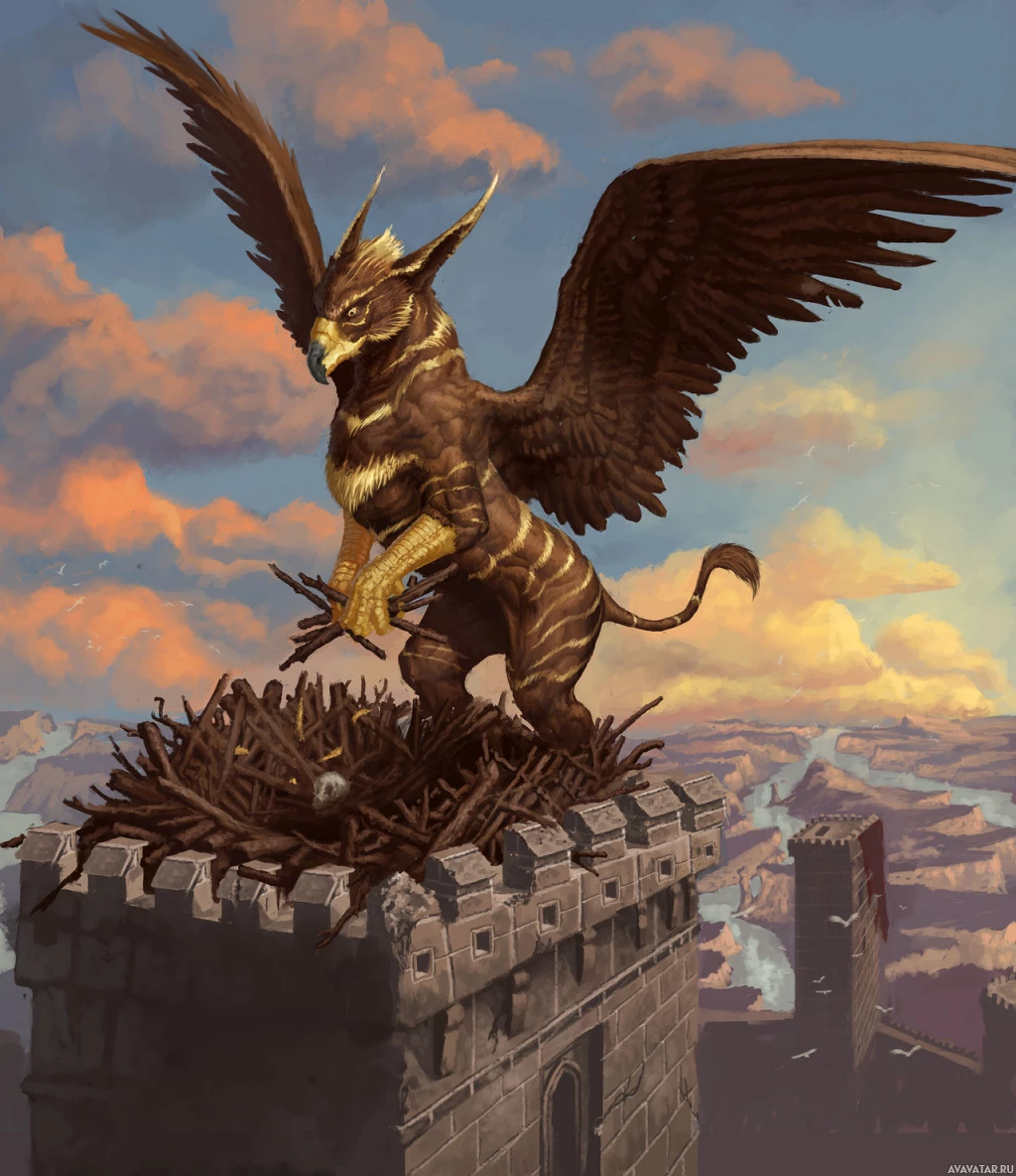 The image depicts a fantasy-themed illustration of a griffon. This creature is typically known as