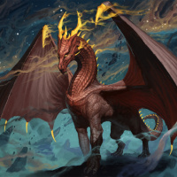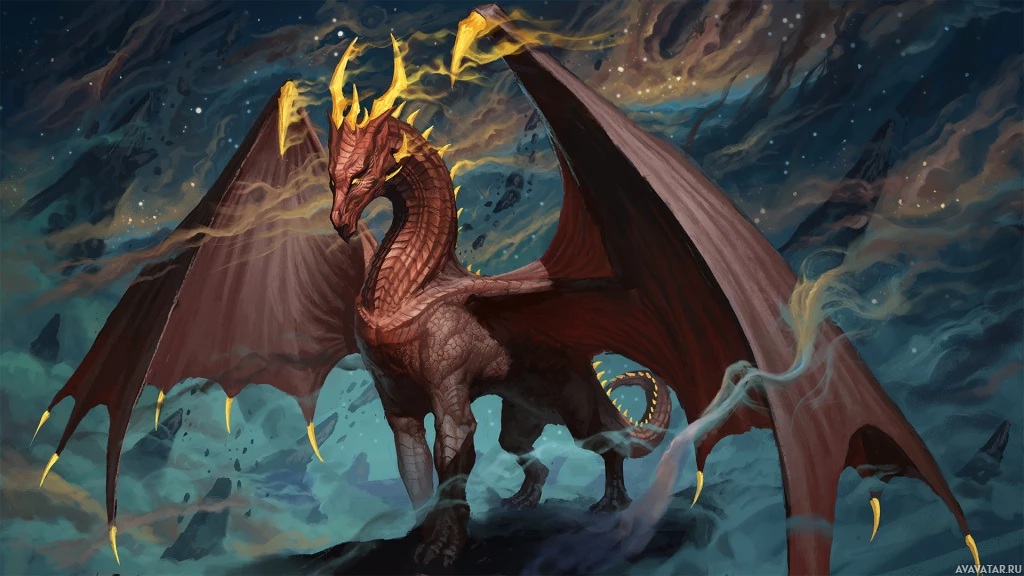 a fantasy dragon with prominent wings and flames. It has a fierce and majestic appearance, often associated with