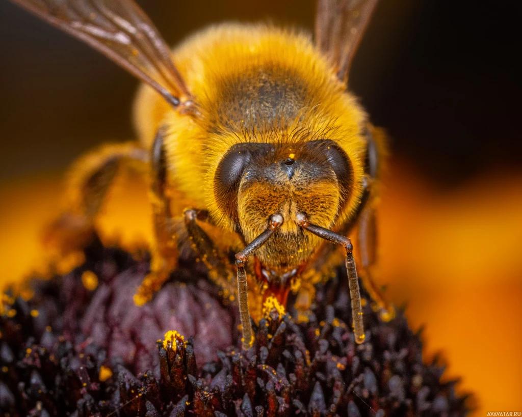 На картинке изображена пчела, которая является насекомым и относится к животному миру. Похоже, что она ведет себя типично для пчел, например, кормится или собирает нектар с цветка.
