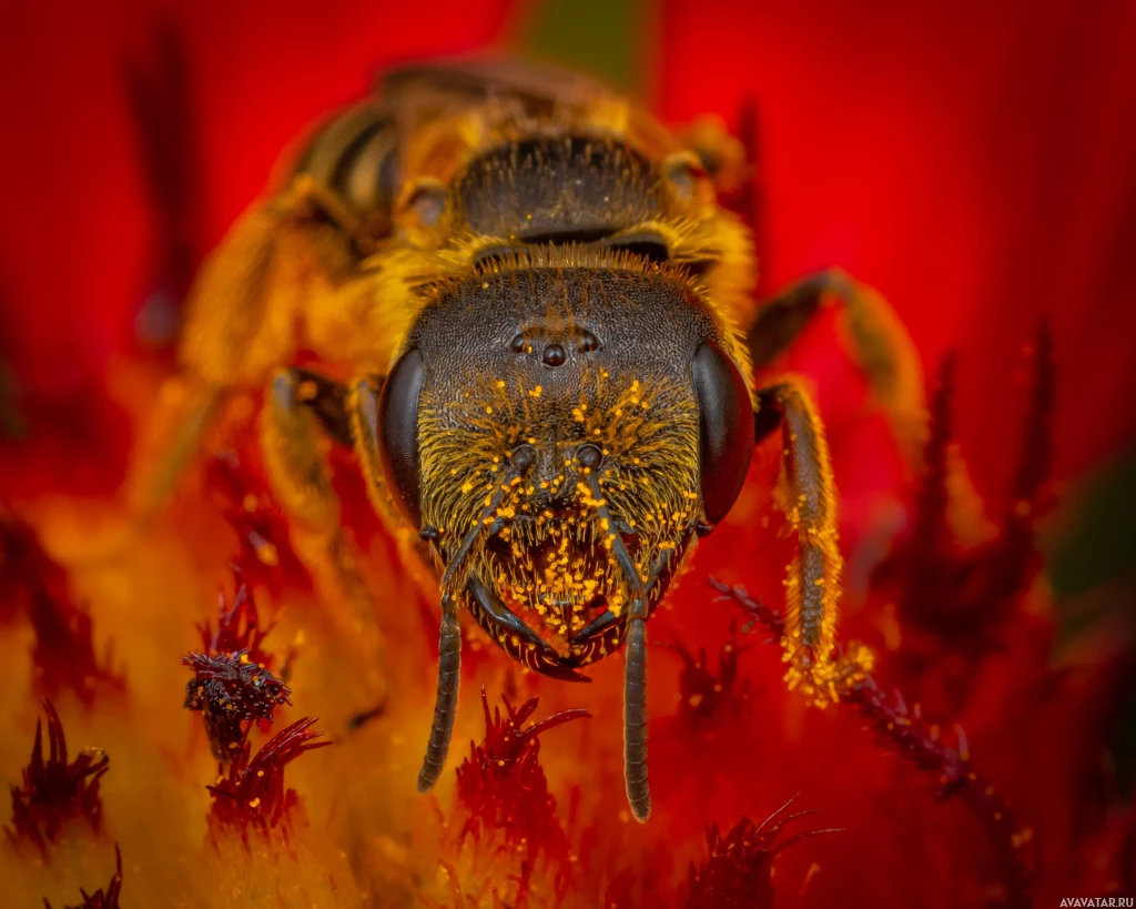 The image shows a bee, which is an insect. It appears to be interacting with the flower it's perched on, possibly collecting nectar or pollen, which are essential for its survival and