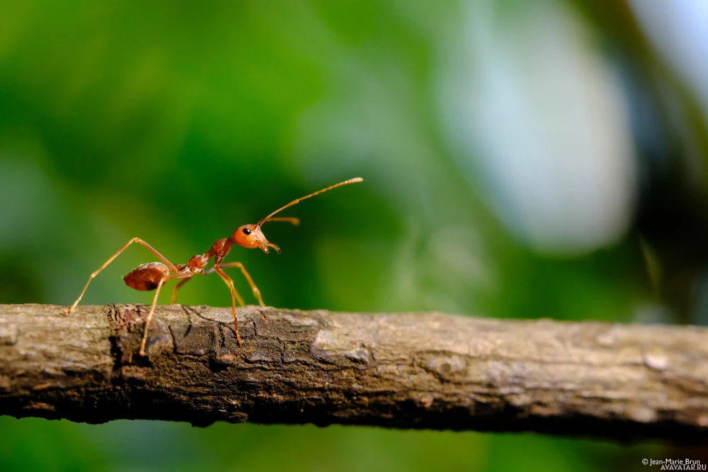 The image shows an insect, specifically an ant, crawling along
