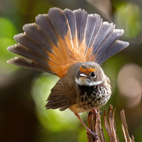 The picture shows a bird, specifically a type of finch. It has distinctive features such as a red breast and a yellowish head with black markings around the eye. The bird is perched on a branch in what appears to be a natural setting.
