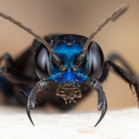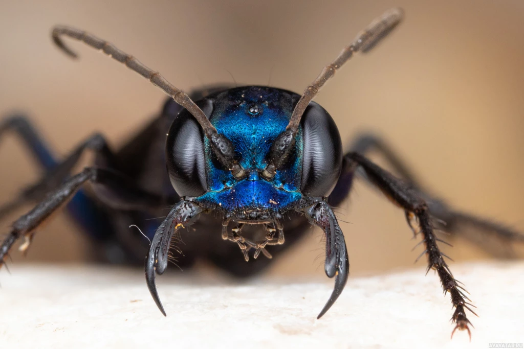 The image shows a close-up of an insect, which appears to be a type of bee or wasp due to
