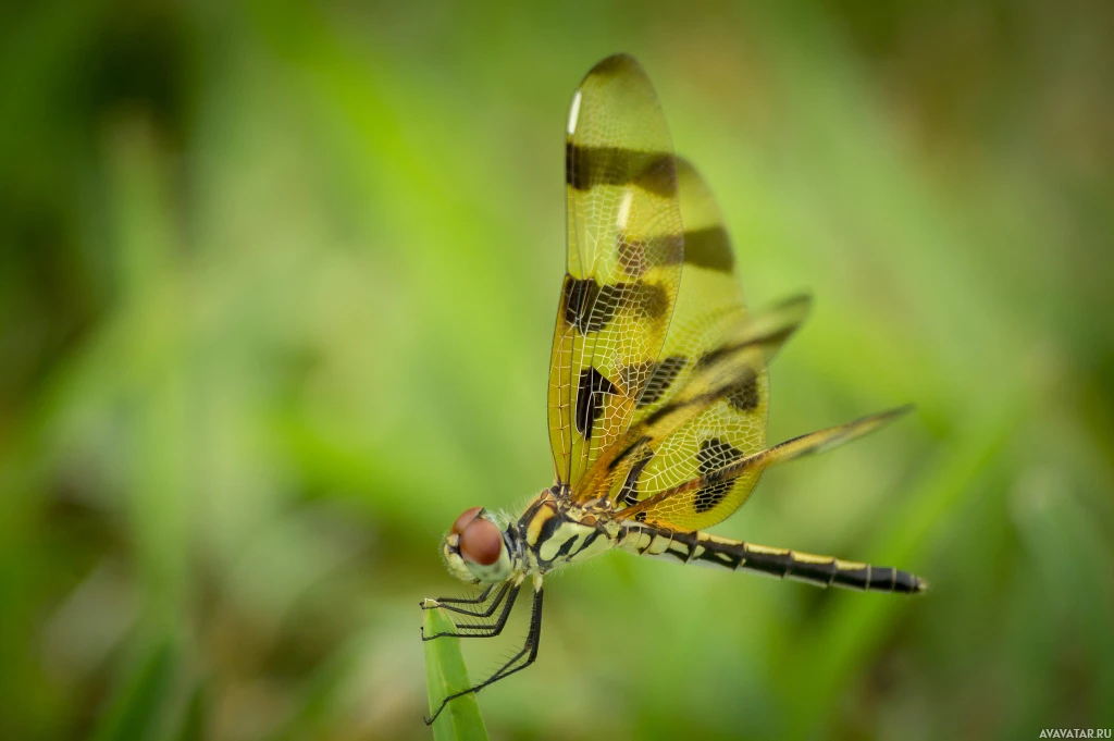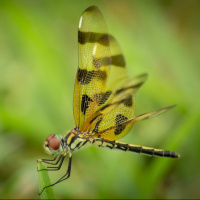 colorful wings and elongated body, which is typical of the order Odonata. Dragonflies are often found in