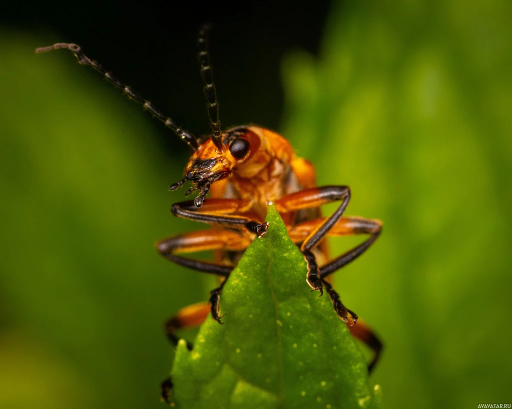 На картинке изображен жук, который является насекомым. Похоже, что он находится на растении с зелеными листьями и, возможно, питается или отдыхает на листве. Жуки известны своим твердым экзоскелетом, крыльями и часто яркими цветами, такими как желтый или красный.