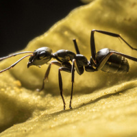 particular ant appears to be navigating across what could be a leaf or some other form of vegetation.