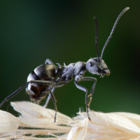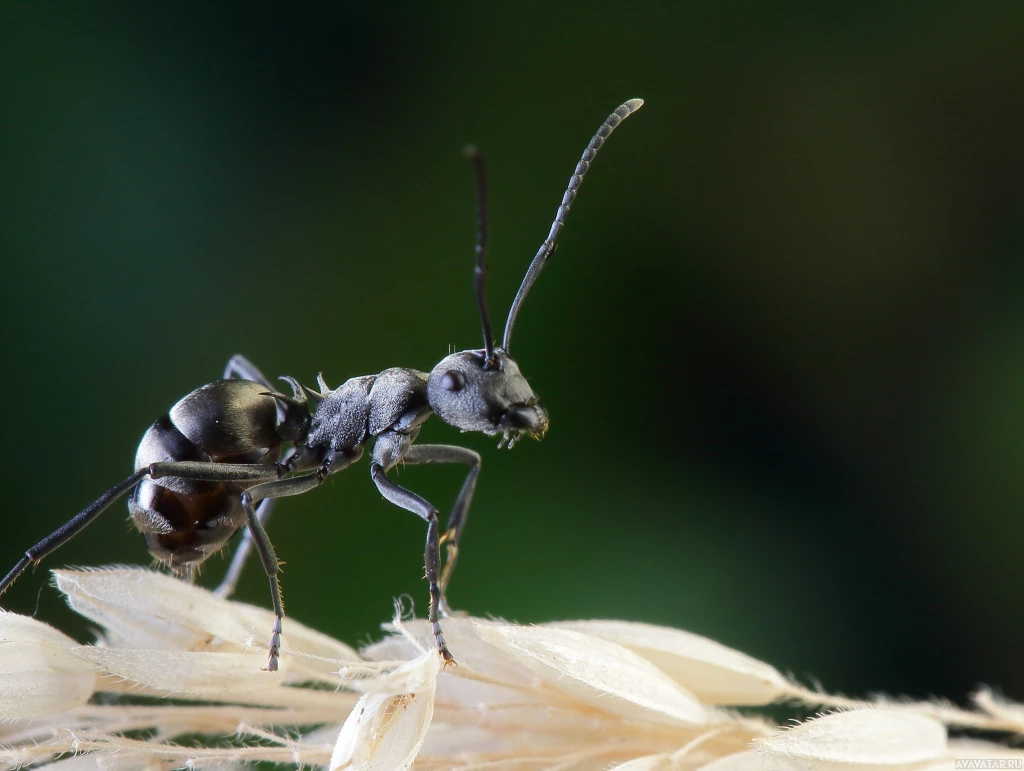 На этом снимке изображен муравей на чем-то, похожем на пчелиные соты или гнездо какого-то другого насекомого. Усики муравья вытянуты, и кажется, что он либо двигается, либо изучает окрестности.