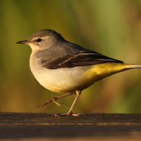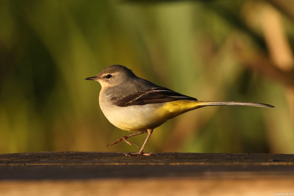 Серая и желтая птица, стоящая на деревянном столбе Больше картинок по схожим темам