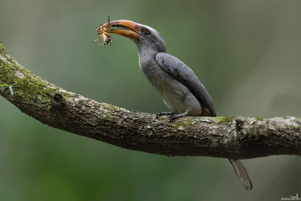 На картинке изображена птица, сидящая на ветке с насекомым в клюве. Вероятно, это пример пищевого поведения птиц, когда они часто ловят и употребляют насекомых в пищу как часть своего рациона.