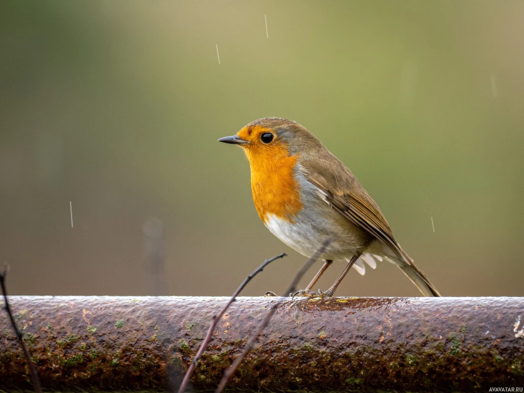 an outdoor setting with rain drops falling, indicating that it might be raining.