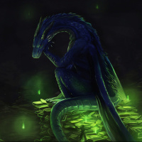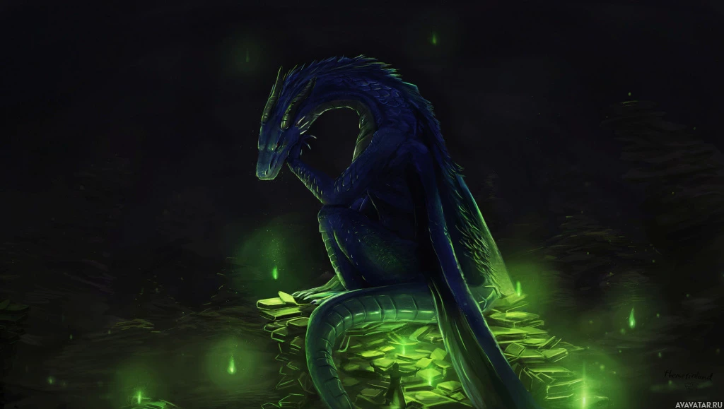 The image depicts a fantasy-themed dragon. It has the body of a serpent and wings, and its scales appear to be iridescent with