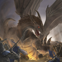 a fantastical scene featuring a dragon, which is a creature commonly associated with mythology and fantasy genres. The dragon appears to be in