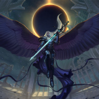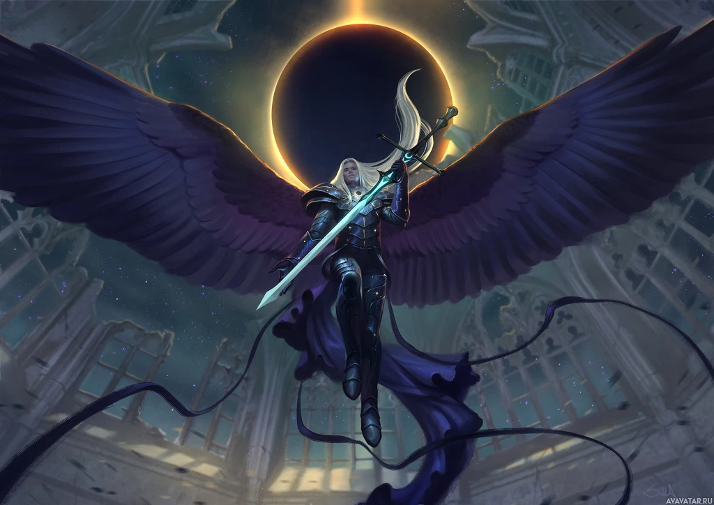divine nature or role as an angel. The overall atmosphere is one of mystique and otherworldliness.