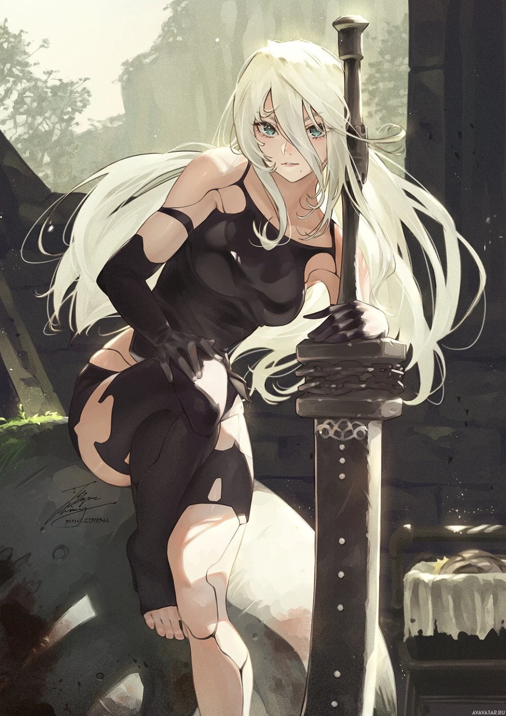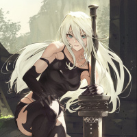 the video game "Nier: Automata." The character is depicted with long