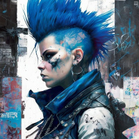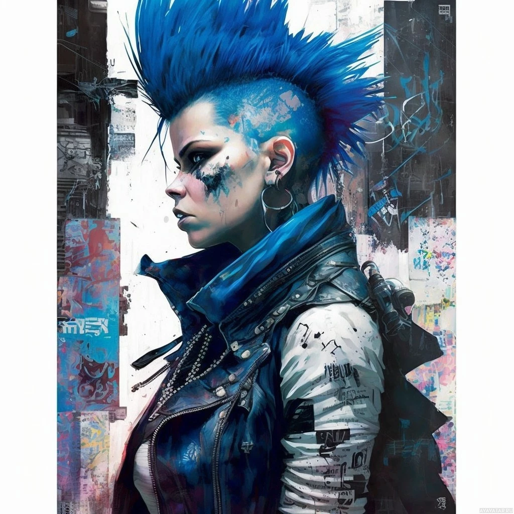 street scene with graffiti-like textures that add to the punk rock aesthetic of the image.