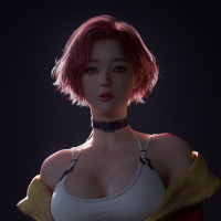 a female character with pink hair. She is wearing a red and yellow outfit that could be interpreted as