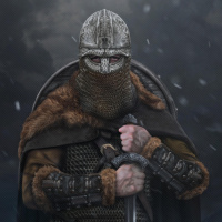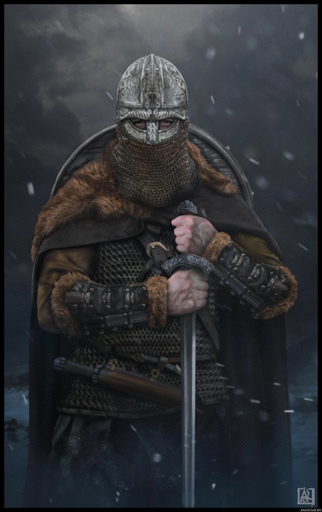 The image shows a digital artwork of a warrior from a historical or fantasy setting. This character is depicted wearing armor and holding a sword, which suggests they are either a soldier or
