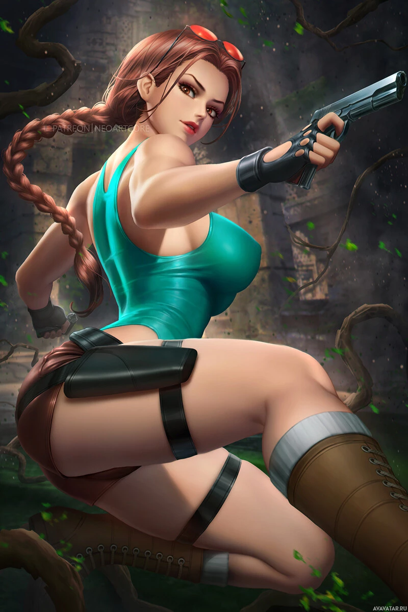 the video game "Tomb Raider." This character is Lara Croft, and she is depicted in her signature attire, which includes